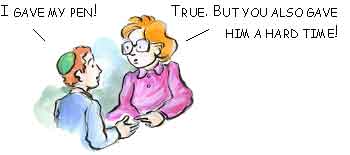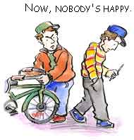- What is "bearing a grudge"? You ask to borrow a friend's bike, and he refuses. The next day, he wants to borrow your pen, so you say, "Take it. I share my things - not like you!"