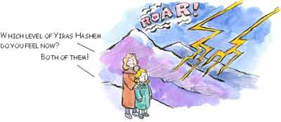 - There are two levels of fear of G-d. The lower level is fear of Divine punishment. The higher level is the awe we feel before G-d's majesty and mystery.