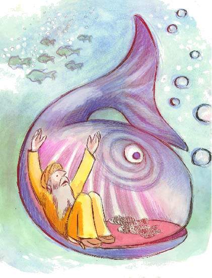 On Yom Kippur, we read the story of Jonah. Jonah was a prophet. G-d told Jonah to command the people of Nineveh to correct their ways or be punished. Jonah didn't want to deliver the message, because he was afraid that the people of Ninveh who did teshuvah (mended their ways) would make the Jews who still had not done teshuvah look bad!Rabbi Riddle's Kwazy Kwestions: